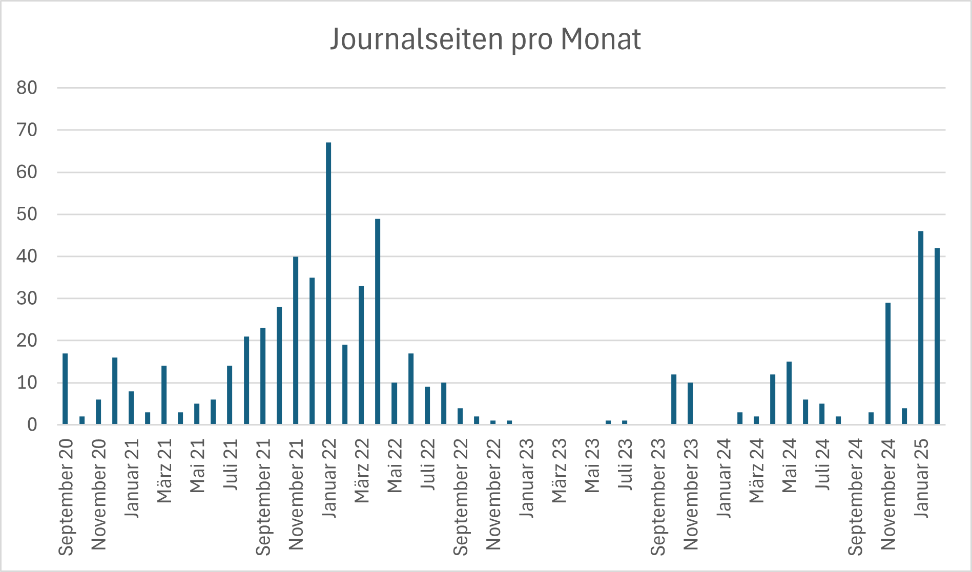 Unter diesem Blogpost siehst du ein interessantes Diagramm, das die Anzahl geschriebener Seiten pro Monat zeigt.